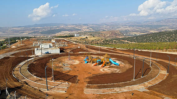 95 Bin Metrekare… Büyükşehir Belediyesi’nin Pazarcık ilçesinde hayata geçirdiği 95 bin metrekarelik Millet Bahçesi projesi tamamlanıyor. Spor sahaları, yürüyüş yolları ve kent mobilyalarıyla birçok sosyal donatı barındıran tesiste, yöresel ürünlerin tanıtılacağı bölümler de yer alacak. Kentin hemen her ilçesinde çok fonksiyonlu kullanımlarıyla ön plana çıkan Millet Konağı ve Millet Bahçesi konseptinde yeni sosyal tesisler kazandıran Kahramanmaraş Büyükşehir Belediyesi, Pazarcık’taki dev projesini de tamamlıyor. İlçenin tümüne hâkim yükseklikteki Bağdınısağır Mahallesi’ne konumlandırılan tesiste, futbol ve basketbol sahaları, yürüyüş yolları, kent mobilyaları ve oyun grupları montajları tamamlanırken; ağaçlandırma ve peyzaj için toprak hazırlıkları sürüyor. Toplamda 95 bin metrekare alana sahip devasa tesiste, yöresel ürünlerin tanıtılmasına olanak tanıyacak bölümlerin inşalarında betonarme çalışmalar büyük ölçüde tamamlanırken, tesisin kısa süre içinde hizmete açılması hedefleniyor. Genişliği itibariyle bölgenin en büyüğü olan rekreasyon alanı, ağaç ve bitki türünün oluşturacağı devasa yeşil alanlarıyla ilçeye nefes aldıracak.