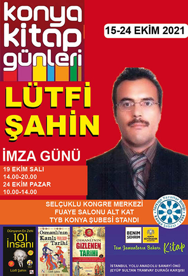 Eğitimci Yazar Youtuber Araştırmacı Lütfi Şahin kendisinin de eserleri ile fuara iştirak edeceğini ifade ederek şunları söyledi: “Ekim ayının 19 unda sabah saatlerinde Selçukya Standında, öğleden sonra TYB standında yer alacağım. Hafta içi müsait olmayanlar içinde Ekim ayının 24 ünde sabah saatlerinde TYB standında yer alacağım. Tüm kitap seven dostlarımızı beklerim.”