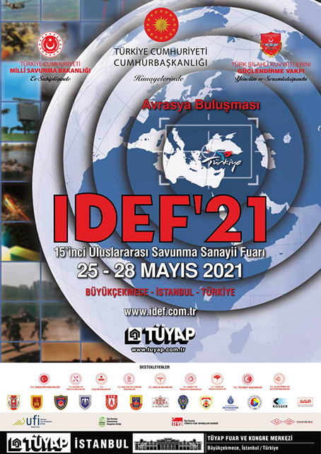Türkiye Cumhuriyeti Cumhurbaşkanlığı himayelerinde, Millî Savunma Bakanlığı ev sahipliğinde, Türk Silahlı Kuvvetlerini Güçlendirme Vakfı yönetim ve sorumluluğunda, Tüyap Tüm Fuarcılık Yapım A.Ş. tarafından organize edilen IDEF’21, 15’inci Uluslararası Savunma Sanayii Fuarı, 25-28 Mayıs 2021 tarihleri arasında İstanbul Büyükçekmece’deki Tüyap Fuar ve Kongre Merkezi’nde her zaman olduğu gibi fiziki olarak gerçekleştirilecek. Türkiye’nin ve dünyanın savunma sanayii devlerinin en önemli buluşma platformu olan IDEF’21’e, yurt içinden ve yurt dışından 1.000’in üzerinde firmanın katılması bekleniyor. Nisan başı itibari ile 95 heyet, fuara katılacağını bildirdi. Şimdiden bu rakama erişilmiş olması fuarın uluslararası iş görüşmeleri açısından verimli geçeceğini gösteriyor. Fuar açılışına kadar bu sayının çok daha fazla olacağı vurgulanıyor. Fuara katılacağını bildiren üst düzey yetkililerin arasında 24 Bakan yer alıyor.