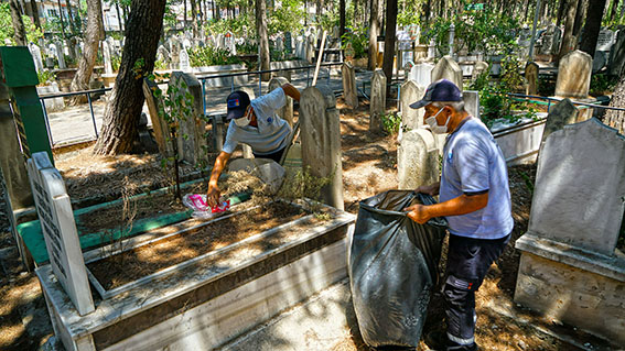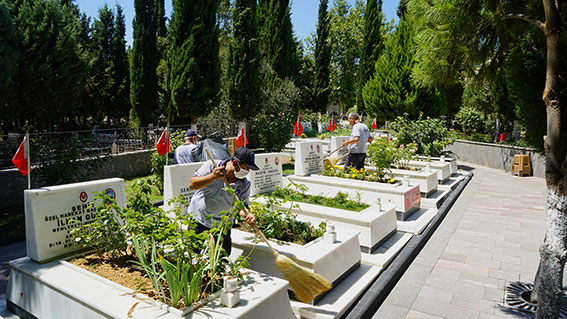 Büyükşehir Belediyesi ekipleri, kent genelindeki şehitlik ve mezarlıklardaki temizlik çalışmalarını yaklaşan Kurban Bayramı öncesi yoğunlaştırdı.