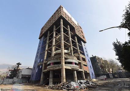 Kahramanmaraş Büyükşehir Belediye Başkanı Hayrettin Güngör, Şehir Meydanı projesi kapsamında sürdürülen çalışmaları yerinde inceledi. Çevre, Şehircilik ve İklim Değişikliği Bakanlığı ile ortaklaşa sürdürülen proje ile şehir merkezinde önemli bir dönüşümün gerçekleştirildiğini belirten Başkan Güngör, “40 dönümlük alanda başlatmış olduğumuz dönüşüm projemizde çalışmalarımız hızla devam ediyor. Özel İdare binamız şehrimizin merkezinde bulunan ve fonksiyonelliğini tamamen yitirmiş bir yapı. Şehrimizde yapmış olduğumuz kamuoyu araştırması neticesinde bu alanda büyük bir dönüşüm gerçekleştirme kararı aldık. Toplamda 18 katlı olan yapının şuan 13. katının yıkımını gerçekleştiriyoruz. Firmamızla yaptığımız görüşmeye göre 2 aylık bir süreçte çalışmaları tamamlamayı hedefliyoruz” diye konuştu.