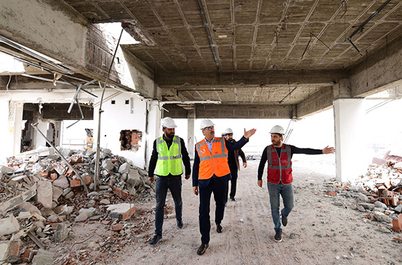Şehir Meydanı projesi kapsamında yıkım çalışmaları hızla devam eden Özel İdare İş Merkezi’nde incelemelerde bulunan Başkan Güngör, “Çevre ve Şehircilik Bakanlığımızla iş birliği içerisinde 40 dönümlük alanda başlatmış olduğumuz dönüşüm projemizde çalışmalarımız hızla devam ediyor. Hayata geçireceğimiz yeni projenin içerisinde otel, iş yerleri, en az bin 500 araçlık otopark, yeme içme mekânları, alışveriş merkezleri, ofisler ve mahalle kültürümüzü yansıtan meydanlar yer alacak. Bu dönüşüm şehrimize çok büyük bir katma değer sağlayacak” dedi.