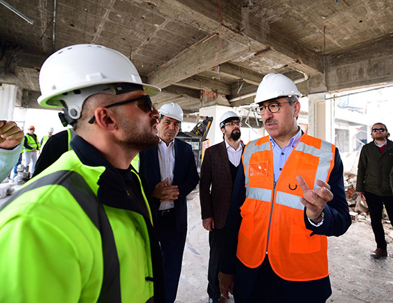 Başkan Güngör Şehir Meydanı çalışmalarını inceledi… Şehir Meydanı projesi kapsamında yıkım çalışmaları hızla devam eden Özel İdare İş Merkezi’nde incelemelerde bulunan Başkan Güngör, “Çevre ve Şehircilik Bakanlığımızla iş birliği içerisinde 40 dönümlük alanda başlatmış olduğumuz dönüşüm projemizde çalışmalarımız hızla devam ediyor. Hayata geçireceğimiz yeni projenin içerisinde otel, iş yerleri, en az bin 500 araçlık otopark, yeme içme mekânları, alışveriş merkezleri, ofisler ve mahalle kültürümüzü yansıtan meydanlar yer alacak. Bu dönüşüm şehrimize çok büyük bir katma değer sağlayacak” dedi. Kahramanmaraş Büyükşehir Belediye Başkanı Hayrettin Güngör, Şehir Meydanı projesi kapsamında sürdürülen çalışmaları yerinde inceledi. Çevre, Şehircilik ve İklim Değişikliği Bakanlığı ile ortaklaşa sürdürülen proje ile şehir merkezinde önemli bir dönüşümün gerçekleştirildiğini belirten Başkan Güngör, “40 dönümlük alanda başlatmış olduğumuz dönüşüm projemizde çalışmalarımız hızla devam ediyor. Özel İdare binamız şehrimizin merkezinde bulunan ve fonksiyonelliğini tamamen yitirmiş bir yapı. Şehrimizde yapmış olduğumuz kamuoyu araştırması neticesinde bu alanda büyük bir dönüşüm gerçekleştirme kararı aldık. Toplamda 18 katlı olan yapının şuan 13. katının yıkımını gerçekleştiriyoruz. Firmamızla yaptığımız görüşmeye göre 2 aylık bir süreçte çalışmaları tamamlamayı hedefliyoruz” diye konuştu. Tarihi Dokuya Uygun Bir Proje Olacak Hayata geçirilecek projenin şehirde önemli bir katma değer oluşturacağını da açıklamalarına ekleyen Büyükşehir Belediye Başkanı Hayrettin Güngör, “Geçtiğimiz günlerde milletvekillerimiz ve il başkanlarımızla birlikte Çevre ve Şehircilik Bakanlığımızı ziyaret ederek bu alanda hayata geçireceğimiz projeyi de netleştirdik. İnşallah yıkım çalışmalarının tamamlanmasının ardından ihale aşamasına geçeceğiz. Hayata geçireceğimiz yeni projenin içerisinde otel, iş yerleri, en az bin 500 araçlık otopark, yeme içme mekânları, alışveriş merkezleri, ofisler ve mahalle kültürümüzü yansıtan meydanlar yer alacak. Şehrimizin tarihi dokusuna, siluetine uygun bir projeyi hayata geçirmiş olacağız. Bu projemiz şehrimize çok büyük bir katma değer sağlayacak. Sürdürülen çalışmalarımızın şehrimize hayırlı olmasını diliyorum” ifadelerini kullandı.