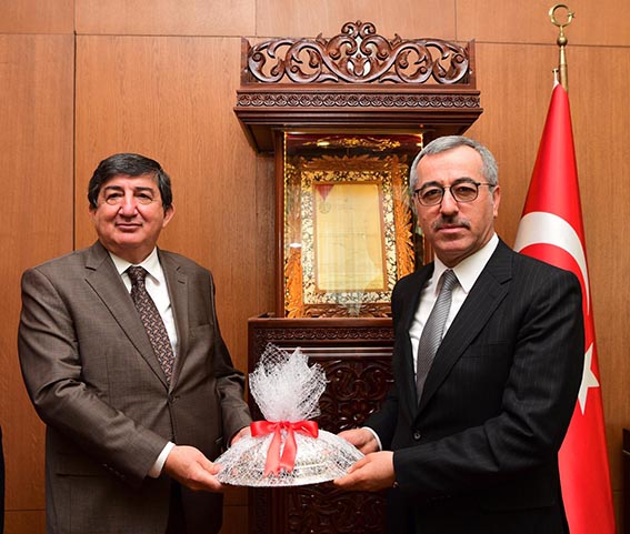 Büyükşehir Belediye Başkanı Hayrettin Güngör, Riyad eski Büyükelçisi Erdoğan Kök’ü makamında ağırladı. Başkan Güngör, “Kahramanmaraş’ımızı en iyi şekilde tanıtmak için birlikte gayret gösteriyoruz” dedi. Kahramanmaraş Büyükşehir Belediye Başkanı Hayrettin Güngör, Kahramanmaraş’ta düzenlenecek olan EXPO 2023 projesinde koordinatörlük görevini üstlenen Riyad eski Büyükelçisi Erdoğan Kök ile bir araya geldi. Ziyarette Onikişubat İlçe Belediye Başkanı Hanefi Mahçiçek ile Belediye Başkan Yardımcısı Ali Ünsal da yer aldı. Ziyaretten duyduğu memnuniyeti ifade eden Büyükşehir Belediye Başkanı Hayrettin Güngör, “Kahramanmaraş’ımızda düzenlenecek olan EXPO 2023 ile ilgili değerlendirmelerde bulunduk. Kahramanmaraş’ımızı en iyi şekilde tanıtmak için birlikte gayret gösteriyoruz.” dedi. Riyad eski Büyükelçisi Erdoğan Kök ise Başkan Güngör’e misafirperverliğinden dolayı teşekkür etti.