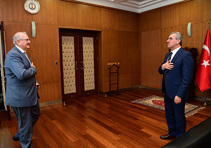 Büyükşehir Belediye Bakanı Hayrettin Güngör, Serbest Muhasebeci Mali Müşavirler Odası Başkanı Atilla Sarıyıldız ve yönetim kurulu üyelerini makamında ağırladı.