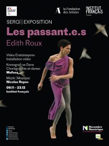 Dijital Kasım etkinlikleri kapsamında, , Institut français Fransız sanatçı Edith Roux’nun “Les passant.e.s” adlı sergisine ev sahipliği yapıyor. Fondation des Artistes ve Institut français de Turquie Istanbul tarafından desteklenen eser 3 ekranlı bir video yerleştirmesidir. Sanatçı bu çalışmasında koreografi için Mufasa, müzik için ise Nicolas Repac ile çalışmıştır.