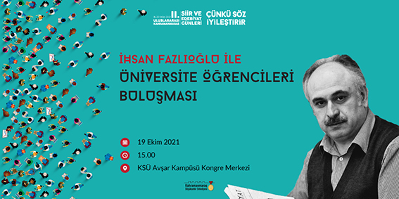 Söyleşi ve Konferanslar Açıklamanın devamında gün içinde gerçekleştirilecek konferans ve söyleşilere dair detaylar paylaşılarak, “Türk Edebiyatındaki pek çok portrenin usta isimler tarafından anlatılacağı etkinliklerimiz yarın saat 13.00’da Duran Boz ve Necip Evlice’nin katılımıyla Soylu Bir İtiraz: Nuri Pakdil programımızla devam edecek. Saat 14.00’da ise Haşim Şahin, Hüseyin Akın ve Yılmaz Daşçıoğlu, Yusuf Genç moderatörlüğünde ‘Türkçe’nin Büyük Haritası: Yunus Emre’ başlığıyla sanatseverlerle buluşacak. İhsan Fazlıoğlu ile buluşma etkinliği saat 15.00’da Avşar Kampüsü Kongre Merkezi’nde düzenlenecek. Mehmet Akif ve Türkiyesi adlı konferansımız ise saat 17.00’da Kültür Park’ta gerçekleştirilecek” dendi. Aşk ile Yoldaş Tiyatro Gösterimi Sahne Maraş Tiyatro Okulu öğrencilerinin ‘Aşk ile Yoldaş’ oyununun da sergileneceğinin ifade edildiği açıklamada, “NFK Kültür Merkezi’nde saat 18.30’da Büyükşehir Belediyesi Sahne Maraş Tiyatro Okulu öğrencilerimiz tarafından hazırlanan Aşk İle Yoldaş adlı tiyatronun ardından, saat 20.00’da Mehmet Akif Ersoy Kültür Merkezi’nde yerli ve yabancı şairlerimizin katılımıyla ‘Şiir Gecesi’ etkinliği düzenlenecek” bilgilerine yer verildi.