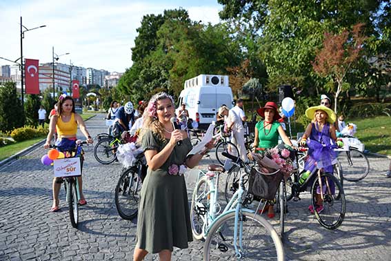 Beylikdüzü’ndeki kadınlar, bisiklet kullanımının artması ve kadın hakları konusunda farkındalık oluşması amacıyla ‘Süslü Kadınlar Bisiklet Turu’ etkinliğinde bir araya geldi. Beylikdüzü Belediyesi’nin desteğiyle “Dünya Otomobilsiz Kentler Günü” nde gerçekleşen etkinlik 151 şehir ve 30 ülkede eş zamanlı olarak düzenlendi. 30 ülke ve 151 şehirde bisiklet kullanımını artırmak ve bisiklet kullanıcıları için güvenli ulaşım altyapısının oluşturulmasına dikkat çekmek amacıyla bu yıl dokuzuncusu düzenlenen ‘Süslü Kadınlar Bisiklet Turu’nun Beylikdüzü ayağı, Yaşam Vadisi’nde gerçekleşti. Beylikdüzü Belediyesi’nin desteğiyle düzenlenen organizasyonda gönüllü kadınlar etkinliğe, süsledikleri bisikletlerle destek verdi. Etkinlik kapsamında konuşma yapan Beylikdüzü Belediyesi Meclis 1.Başkanvekili Serdal Mumcu katılan herkese teşekkür ederek, Beylikdüzü Süslü Kadınlar Bisiklet Turu Organizatörü Özgen Kaplan’a çiçek takdim etti. “Önceliğimiz yaşanılabilir bir kent oluşturmak” Beylikdüzü’ndeki bisiklet parkurunun 9 bin metreye çıkacağını ve önceliğin her zaman yaşanabilir bir kent oluşturmak olduğunu belirten Serdal Mumcu, “Kadınlar bulunduğu her ortamda fark yaratıyor. Bizler Beylikdüzü’nde bu anlamda da farklıyız. Kentimizde mevcut 6 bin metre olan bisiklet sürüş parkurumuz yakında 9 bin metreye çıkacak. Beylikdüzü’nde bisiklet yollarımızla bizlerde fark yaratmaya devam ediyoruz. Bundan sonraki süreçte de bunu daha ileriye taşıyacağız. Bu anlamda yaşanabilir kentler oluşturmak bizim birinci önceliğimiz. Beylikdüzü olarak İstanbul’da her daim fark yaratmaya devam ediyoruz.” şeklinde konuştu. “Kadın korkmadan yollarda olmalı, toplumun her alanında var olmalı” Etkinliği düzenlemenin bir amacının da bisikletin günlük hayatın bir parçası olmasına dikkat çekmek olduğunu belirten Özgen Kaplan ise, “Turumuz bu yıl yaklaşık 150 şehir ve 30 ülkede eş zamanlı olarak bağımsız gönüllü kadınlar tarafından gerçekleştirildi. Bisikletin günlük hayatın bir parçası olmasına dikkat çekmek amacıyla düzenlediğimiz ‘Süslü Kadınlar Bisiklet Turu’ kadınların toplumda daha fazla görünürlüğünü sağlamak, kendilerini temsil etmelerine fırsat vermek ve güvenli bisiklet sürmeye ilişkin altyapı talebini pekiştirmek istiyoruz. Kadın korkmadan yollarda olmalı, toplumun her alanında var olmalı. Kadın ve erkeklerin bu toplumda aynı haklara, yükümlülüklere sahip olduğunu ve her alanda kendilerini özgürce ifade etme hakları olduğunu bir kez daha hatırlatmak istiyoruz.” dedi.