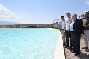 Ahmadov, Başkan Hanefi Mahçiçek'in öncülüğünde EXPO 2023 Rekreasyon Alanı'nı gezerken, projeler ve kuracakları pavilyon hakkında bilgi alışverişinde bulundu.