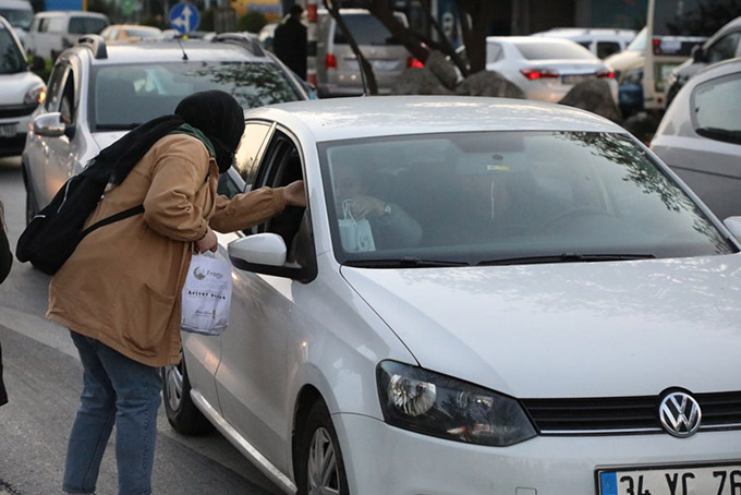 İftara evlerine yetişemeyecek durumda olan sürücülere, Eyüpsultan Belediyesi Gençlik Merkezi öğrencilerinin oluşturduğu ekiplerle iftariyelik ikramı yapılıyor.