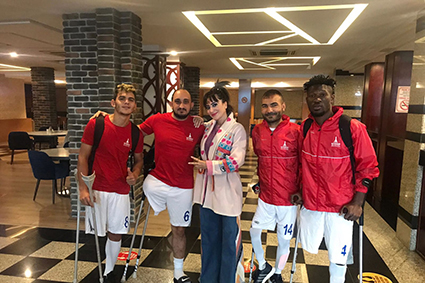 Pandemi kurallarına harfiyen uyan Tuba Ünal, törenin ardından kaldığı otelde İzmir Büyükşehir Belediyesi ampute futbol takımıyla karşılaştı. Sporcularla bir süre sohbet eden sanatçı, onlarla hatıra fotoğrafı çektirmeyi de ihmal etmedi.