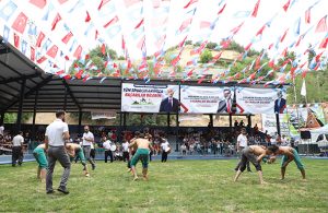 Dulkadiroğlu Belediyesi tarafından Dereköy mahallesine inşa edilen Dereköy Şeref Eroğlu Er Meydanı’nda başlayan güreş müsabakaları, renkli görüntülere sahne oldu.