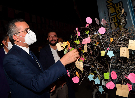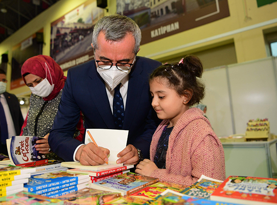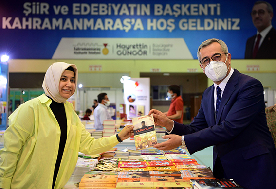 4 Günde 100 Bin Ziyaretçi… Kahramanmaraş Büyükşehir Belediyesi 7. Uluslararası Kitap ve Kültür Fuarı’nı ziyaret eden Başkan Hayrettin Güngör, “150 civarında yayınevi ve 200 yazarla Türkiye’nin en büyük fuarlarından birine ev sahipliği yapıyoruz. Bugüne baktığımızda çevre şehirlerimizden de gelen yaklaşık 100 bin ziyaretçiyi ağırladık. Pazar gününe kadar 250 bin kişinin fuarımızı ziyaret edeceğini öngörüyoruz” dedi. Kahramanmaraş Büyükşehir Belediye Başkanı Hayrettin Güngör eşi Leyla Güngör ile KAFUM’da düzenlenen 7. Uluslararası Kitap ve Kültür Fuarı’nı ziyaret etti. Meclis üyelerinin de yer aldığı programa ilk olarak kültür stantlarını ziyaret ederek başlayan Başkan Güngör, ardından fuara katılan miniklere Büyükşehir Kültür Yayınları çizgi romanları hediye etti. Daha sonra yayınevleri temsilcileri ve katılımcı yazarlarla bir araya gelen Başkan Güngör, alandaki vatandaşlarla da bir süre sohbet etti. Ziyaret sonrası açıklamada bulunan Başkan Hayrettin Güngör, “Geçtiğimiz hafta Uluslararası Şiir ve Edebiyat Günleri etkinlikleri gerçekleştirdik. Şiir ve edebiyatın başkenti olarak önemli programlar yaptık. Akabinde de kitap fuarımızın 7’incisini açtık. Bugüne baktığımızda 100 bin rakamına ulaştığımızı görüyoruz. Bu ilgi de bizi ziyadesiyle memnun ediyor” ifadelerini kullandı. Pazar Gününe Kadar 250 Bin Ziyaretçi Açıklamasının devamında fuardaki toplam ziyaretçi hedefini belirten Başkan Güngör, “Kitap fuarımız Pazar gününe kadar devam edecek. Öyle tahmin ediyorum ki bu sene hedeflediğimiz 250 bin ziyaretçi sayısına ulaşmış olacağız. Özellikle Gaziantep, Hatay, Adana, Osmaniye, Şanlıurfa, Adıyaman gibi komşu şehirlerimizden çok önemli katılım olduğunu görüyoruz. Pandemi kısıtlılıkları dolayısıyla geçtiğimiz yıl gerçekleştiremediğimiz etkinliği inşallah önümüzdeki yıllarda daha da büyüterek sürdürmüş olacağız” diye konuştu. UNESCO Yolunda Güçlü Adımlar Düzenlenen programların UNESCO hedefine de katkı sağladığını aktaran Büyükşehir Belediye Başkanı Hayrettin Güngör, “Kahramanmaraş’ımızdaki en önemli değerlerimizden biri de şiir ve edebiyat. Bu değerimizi tüm dünyada duyurmak istiyoruz. Yedek listeye dahil olduğumuz UNESCO Yaratıcı Şehirler Ağı’na yolculuğumuz iddialı şekilde devam ediyor. İnşallah önümüzdeki yıllarda asıl listeye dahil olarak, bu potansiyelimizi uluslararası arenada da tanıtmış olacağız. Ben tekrar katılım sağlayan tüm yayınevlerine, yazarlarımıza ve katılımcılarımıza teşekkür ediyorum. Herkesi Kahramanmaraş kitap fuarına bekliyoruz” cümlelerini kullandı.