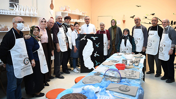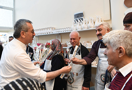 Başkan Güngör’den Yaşlılar Haftası’nda anlamlı ziyaret Yaşlılar Haftası kapsamımda İleri Yaş Atölyesi kursiyerleri ile bir araya gelen Başkan Güngör, “İleri Yaş Atölyelerimize gösterilen ilgiden son derece memnunuz. Oluşturduğumuz bu atölyelerle hem yaşlılarımızın el becerilerini geliştirmelerini hem de sosyal yaşamla bağlarını daha da güçlendirmeyi hedefliyoruz. Ulu çınarlarımızın maharetli ellerinden çok önemli eserler ortaya çıkıyor. Biz vatandaşlarımızın yanındayız. Hemşehrilerimizle el ele, gönül gönüle şehrimiz için çalışmayı sürdüreceğiz” dedi. Kahramanmaraş Büyükşehir Belediye Başkanı Hayrettin Güngör, 65 yaş üzeri vatandaşlar için oluşturulan İleri Yaş Atölyesi kursiyerleri ile bir araya geldi. Kültür Park’ta gerçekleştirilen ziyarette ilk olarak vatandaşlarla sohbet eden Başkan Güngör, ardından atölyede gerçekleştirilen etkinliğe katıldı. 65 yaş üzeri vatandaşlar için önemli çalışmaların gerçekleştirildiğine vurgu yapan Başkan Hayrettin Güngör, “Yaşlılar Haftası dolayısıyla bugün burada büyüklerimizle beraberiz. Ancak biz yaşlılarımızı sadece bu haftada anmıyoruz. Yaşlılarımız bizler için bir haftaya sığdırılamayacak kadar önemli ve değerli. Bizim inancımıza ve değerlerimize göre büyüğüne değer vermeyen kendisi de değer göremez” ifadelerini kullandı. Çok Güzel Eserler Ortaya Çıkıyor İleri Yaş Atölyelerinde çok güzel eserlerin ortaya çıkarıldığını da açıklamalarına ekleyen Büyükşehir Belediye Başkanı Hayrettin Güngör, “Öncelikle buradaki tüm büyüklerimizi tebrik etmek istiyorum. İleri Yaş Atölyelerimizde gerçekten çok başarılı eserler ortaya çıkarıyorlar. Bizler de bu anlamlı günde büyüklerimizle beraber olarak onların bu çalışmalarına ortak olmak istedik. Yaşlı vatandaşlarımız için düzenlenen bu eğitimler bizler için gerçekten çok değerli. Büyüklerimiz burada bizlere öğrenmenin yaşının olmadığını bir kez daha gösterdi” diye konuştu. Çalışmalar Artarak Devam Ediyor Büyükşehir Belediyesi tarafından yaşlılara yönelik faaliyetlerin artarak devam ettiğini vurgulayan Başkan Güngör, “Büyükşehir Belediyesi olarak değerli yaşlı vatandaşlarımıza yönelik çok ciddi faaliyetler hayata geçiriyoruz. Özellikle YADES programımız yaşlı vatandaşlarımıza hizmet konusunda çok önemli bir noktada bulunuyor. Bu programımız sayesinde özellikle evlerinde yalnız yaşayan yaşlılarımızın ihtiyaçlarını ve sağlık durumlarını tespit etmek yaşlılarımıza hizmet noktasında bizler için çok değerli. Yine yaşlılarımıza yönelik çeşitli atölyelerde eğitimler veriliyor. Verilen bu eğitimler sayesinde yaşlılarımızın hem el becerileri gelişiyor hem de kaliteli zaman geçiriyorlar. Ayrıca şehrimizde 12 yaşlı dinlenme merkezi bulunuyor. Bu tesislerimiz de aktif olarak kullanılıyor. Bunun yanında peyderpey farklı etkinliklerle ulu çınarlarımızın yanında olmaya gayret ediyoruz. Yaşlılarımıza yönelik çalışmalarımız yıldan yıla artarak devam ediyor” dedi. Başkan Güngör’e Teşekkür Çini ve seramik atölyesinde eğitim alan kursiyerler, İleri Yaş Atölyelerinde gerçekleştirilen eğitimlerden dolayı duydukları memnuniyeti ifade ederek, “Büyükşehir Belediyemiz tarafından 65 yaş ve üzeri vatandaşlara yönelik kursların açıldığını duyar duymaz kayıt yaptırdık. Burada hem el becerilerimizi geliştiriyoruz hem de zamanımızı daha verimli bir şekilde değerlendiriyoruz. Bizlere bu imkânı sağlayan Büyükşehir Belediye Başkanımız Hayrettin Güngör’e ve emeği geçen tüm hocalarımıza teşekkür ederiz” dedi. Yaşlı vatandaşlar, çini ve seramik atölyesinde kendi el emekleriyle yaptıkları tabloyu Büyükşehir Belediye Başkanı Hayrettin Güngör’e hediye etti. Başkan Güngör’de çini ve seramik atölyesinde eğitim alan yaşlı vatandaşların Yaşlılar Haftası’nı kutlayarak çeşitli hediyeler verdi.