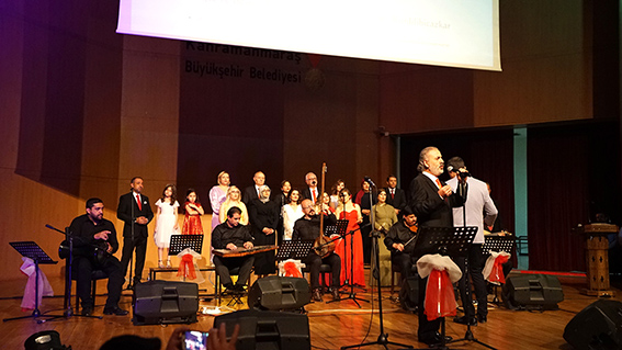 Büyükşehir Belediyesi tarafından düzenlenen etkinlikte, Akşam Sefası Türk Sanat Müziği Topluluğu, Yeşilçam’ın unutulmaz eserlerini Kahramanmaraşlılar için seslendirdi. Kahramanmaraş Büyükşehir Belediyesi, kültür sanat etkinliklerine hız kesmeden devam ediyor. Bu kapsamda, Yeşilçam’dan Şarkılar konseri gerçekleştirildi. Etkinlikte, Mehmet Bülent Paköz şefliğinde Akşam Sefası Türk Sanat Müziği Topluluğu, Yeşilçam filmlerinde yer alan unutulmaz eserleri Kahramanmaraşlılar için seslendirdi. Mehmet Akif Ersoy Kültür Merkezi’nde gerçekleştirilen etkinlikte KSÜ Rektörü Prof. Dr. Niyazi Can, AK Parti İl Kadın Kolları Başkanı Gül Çitil Okur, Kültür Spor ve Turizm Dairesi Başkanı Duran Doğan ve çok sayıda vatandaş da yer aldı. Seni Benden Alamazlar, Dert Bende Derman Sende, Sevemedim Kara Gözlüm ve Kıskanırım Seni Ben gibi birbirinden değerli eserlerin seslendirildiği gecede dinleyiciler de hep bir ağızdan koroya eşlik etti. Yaklaşık 2 saat süren etkinlikte koro ve saz heyeti sergiledikleri performansla dinleyicilerden alkış aldı. Etkinliklerimiz Artarak Devam Edecek Konserde tüm koro adına şef Mehmet Bülent Paköz’e teşekkür ederek çiçek takdim eden Kültür Spor ve Turizm Dairesi Başkanı Duran Doğan, “Büyükşehir Belediyesi olarak çeşitli kültür sanat etkinliklerimizi vatandaşlarımızla buluşturmaya gayret ediyoruz. Bugün de Akşam Sefası Türk Sanat Müziği Topluluğu’nun katılımıyla Yeşilçam’dan şarkılar konserimizi gerçekleştirdik. Etkinliğimize tüm yaş gruplarından hemşehrilerimizin katıldığını görüyoruz. Bu da bizler için son derece kıymetli. İnşallah önümüzdeki süreçte de kültür sanat etkinliklerimiz artarak devam edecek” ifadelerini kullandı.