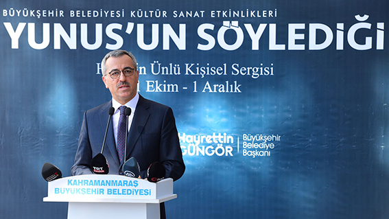 Kahramanmaraş Büyükşehir Belediye Başkanı Hayrettin Güngör, 2021 UNESCO Yunus Emre Yılı kapsamında düzenlenen Yunus’un Söylediği adlı resim sergisinin açılış programına katıldı. Türk Edebiyatının en önemli portrelerinden Yunus Emre’ye ait 30 şiirin tuvale aktarıldığı resim sergisinin açılış programı Yedi Güzel Adam Edebiyat Müzesi’nde gerçekleştirildi. Küratörlüğünü Yazar İsmail Erdoğan’ın yaptığı ve Sanatçı Hüseyin Ünlü imzasını taşıyan eserlerin yer aldığı sergi açılışında konuşan Başkan Güngör, “Vefatının 700’üncü sene-i devriyesinde edebiyatın başkentinde bugün Yunus Emre’nin beyitleriyle oluşturulan sergimizin açılışını gerçekleştiriyoruz. Anadolu’nun bu barış ve gönül insanını anlamak, hatırlamak ve gelecek nesillere aktarmak son derece önemli. Yunus Emre gönül yolculuğuna çıkarken yalnız değildi. Hocası Taptuk Emre’nin dergâhında, ruhani yolculuğunu pekiştirmişti” diye konuştu.