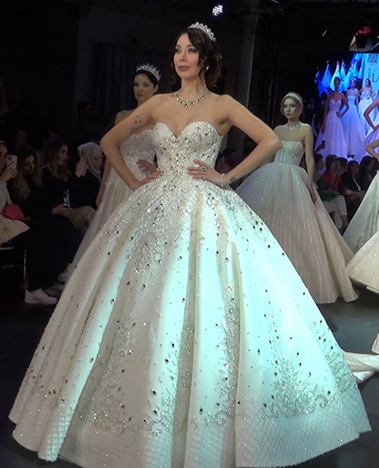 Defilenin baş mankenliğini kırmızı gelinliğiyle Gizem Özdilli, defilenin sürprizi kraliçeleri andıran gelinliğiyle Zahide Yetiş oldu.